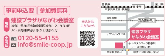 メールフォームから http://www.smile-coop.jp/contact.php *「お問い合わせ内容」に「5月10日セミナー参加希望」とご入力ください